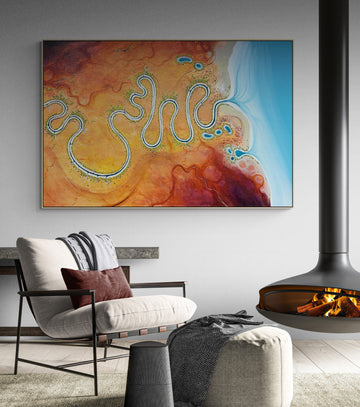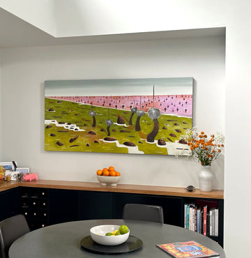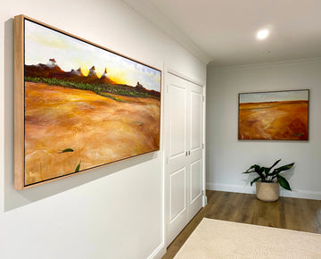 We finally bought our first family home in Perth a few years back and just recently finished the major renovations of the living room to the point where we were desperate to start sprucing up the great white walls! Sarah is in charge of the "art direction" of the house and sat on Day's End for quite some time before bringing it formerly to "The Council" for approval. The girls were all over it instantly and I was allowed a couple of days to "decide" whether I liked it or not. My artistic sense is largely limited to painting myself into a corner so this wasn't as easy a decision as it was for others. The pragmatist in me asked all the (apparently) wrong questions about its suitability but I eventually quelled all of that by having the piece up on the big screen and staring at it intently for longer than was likely necessary.All this to say that, despite a generous amount of nerves (this is our first real art purchase), we are totally over the moon with your piece. Fantastic is not high enough praise, my previewing on the big screen is no comparison and even the photos attached here do not do the piece justice. The presence it has in our house is surreal and amazing. We originally intended to put it on the longer wall of the living room (hence the size choice) but after trying it on the shorter wall, there was no question that's where it was meant to be. From here it becomes the first thing you see walking into the house, is in line with the sitting corner of the room, is visible from the dining room and easily looked at from all typical seating spots on the sofa.Day's End will be enjoyed daily by our family and by anyone who sets foot in our house. For that, we will forever be thankful.