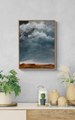 A Clearing Moment captures a still moment beneath a vast sky as clouds move slowly over a rugged, mountainous landscape. The textured forms below feel ancient and grounded, while the sky drifts freely above, creating a calm sense of distance and pause.