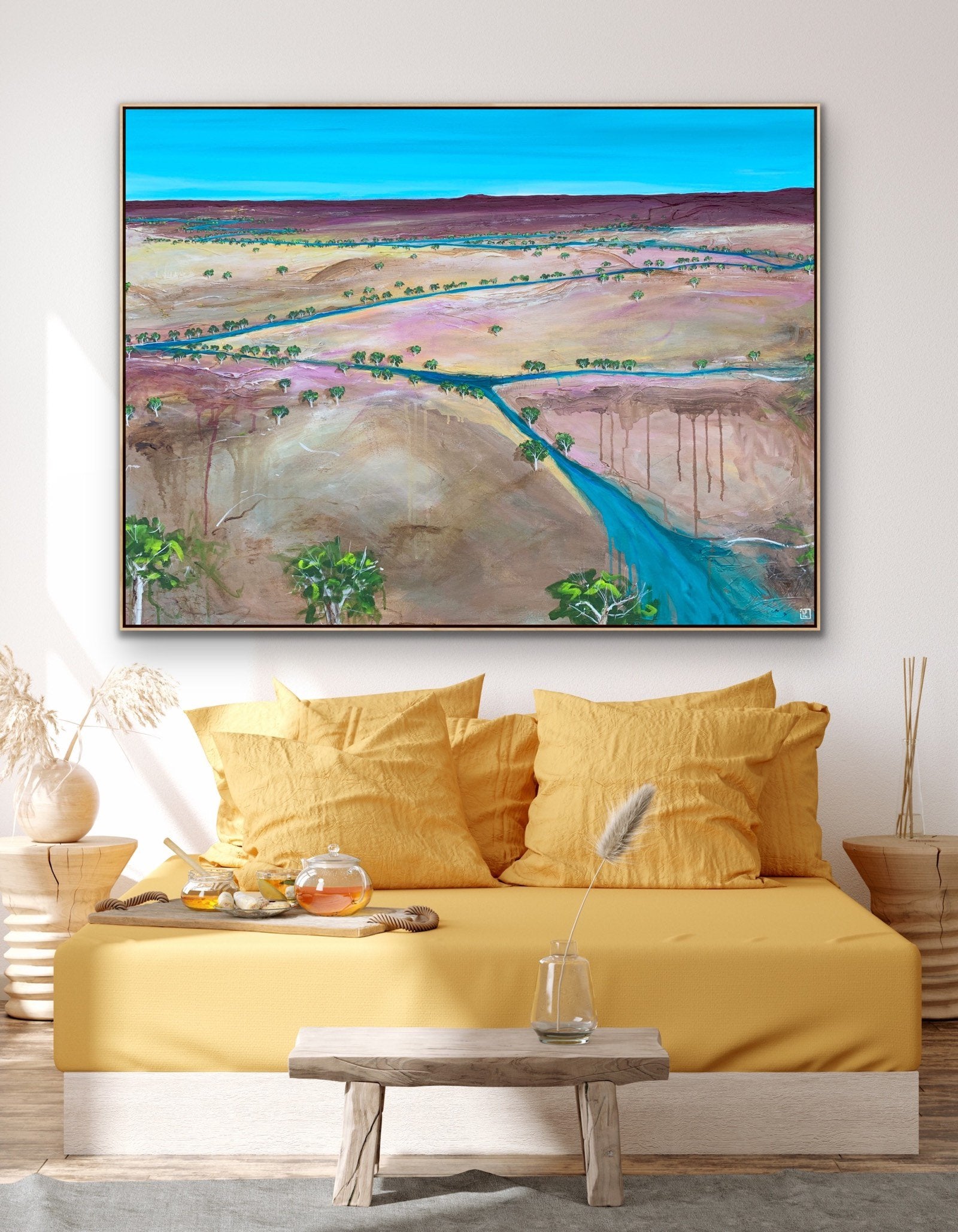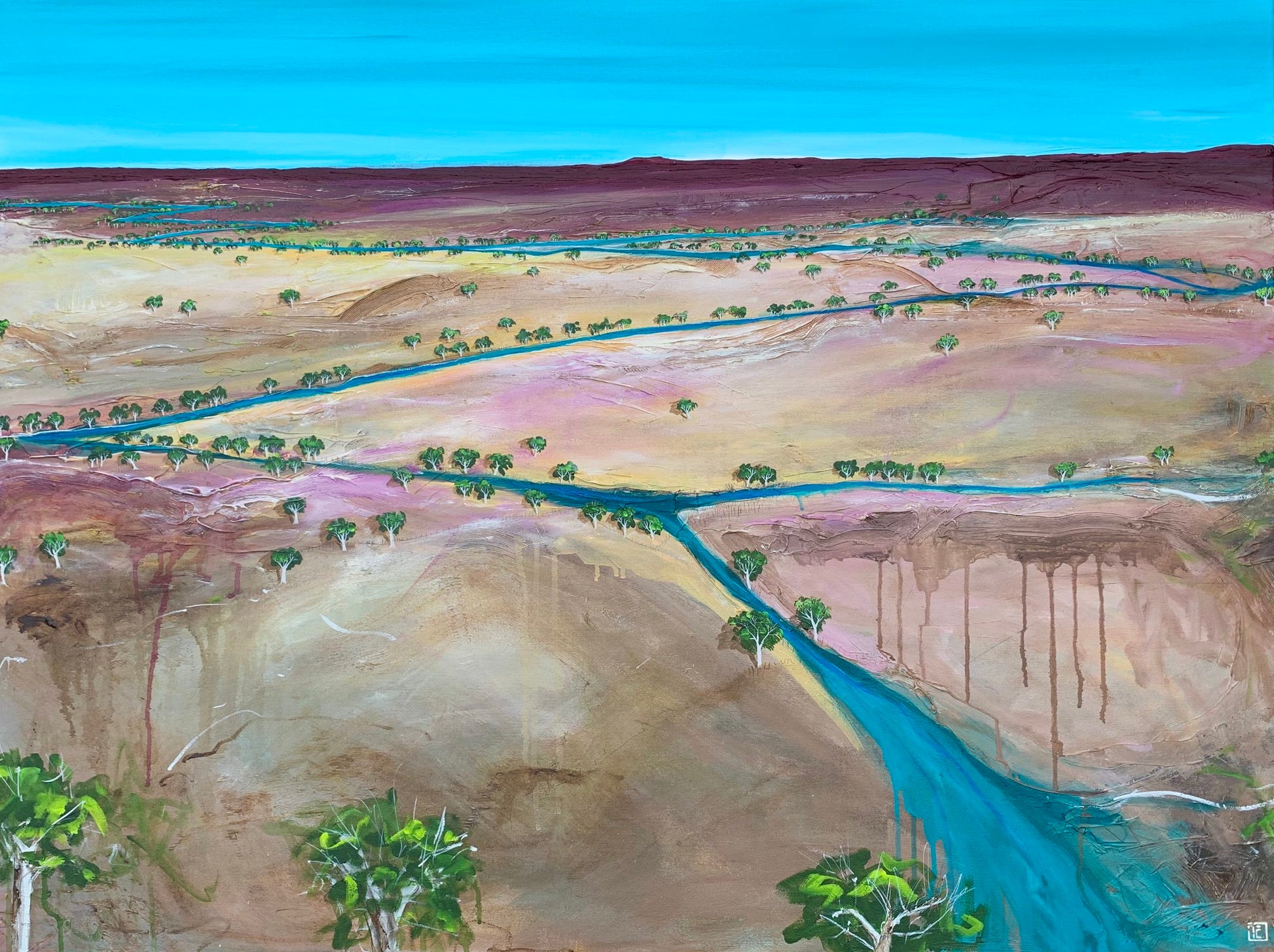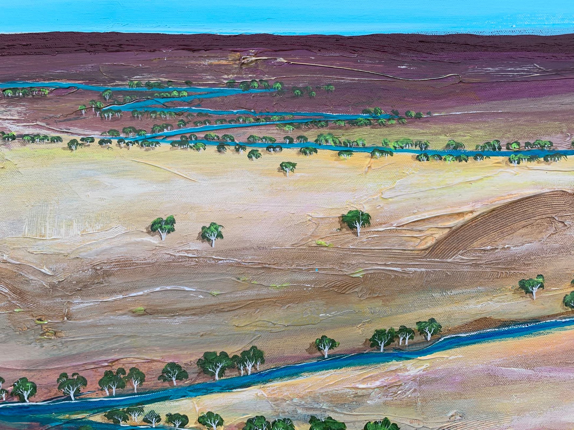 Finding My Way Back To You is inspired by the rich textures and colours of the Australian Outback. My hope is that this painting brings a sense of calm to the room where it lives, and that is makes the people who enter the room feel as though a part of nature is right there with them. Layered acrylics on a texture base on stretched cotton canvas. This painting is double glazed and is finished with blackened edges and is ready to hang. The Artwork is stamped on the front, and signed and dated on the back, and will be securely packaged for your peace of mind. A Certificate of Authenticity is also provided.
