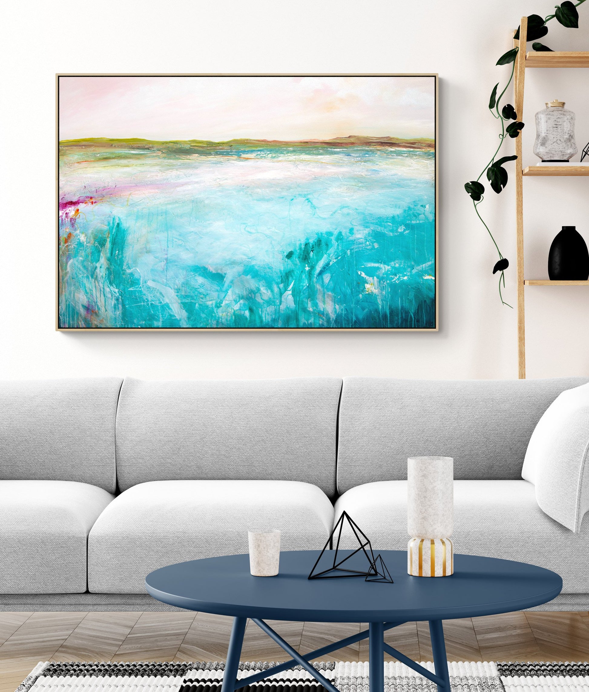 Over The Bay In Spring by Tania Chanter is inspired by the beautiful Australian seascape and the changes of light and mood throughout the day. Tania’s hope is that this painting brings a sense of calm to the room where it lives, and that it makes the people who enter the room feel as though a part of nature is right there with them.