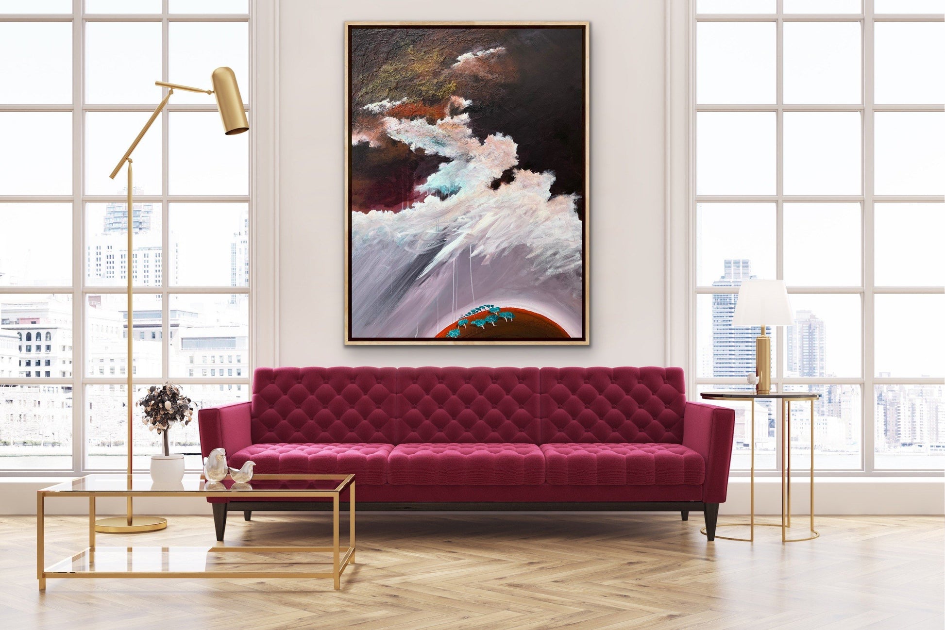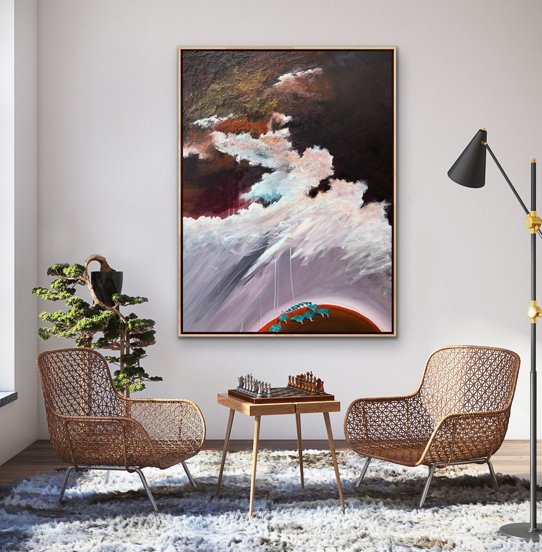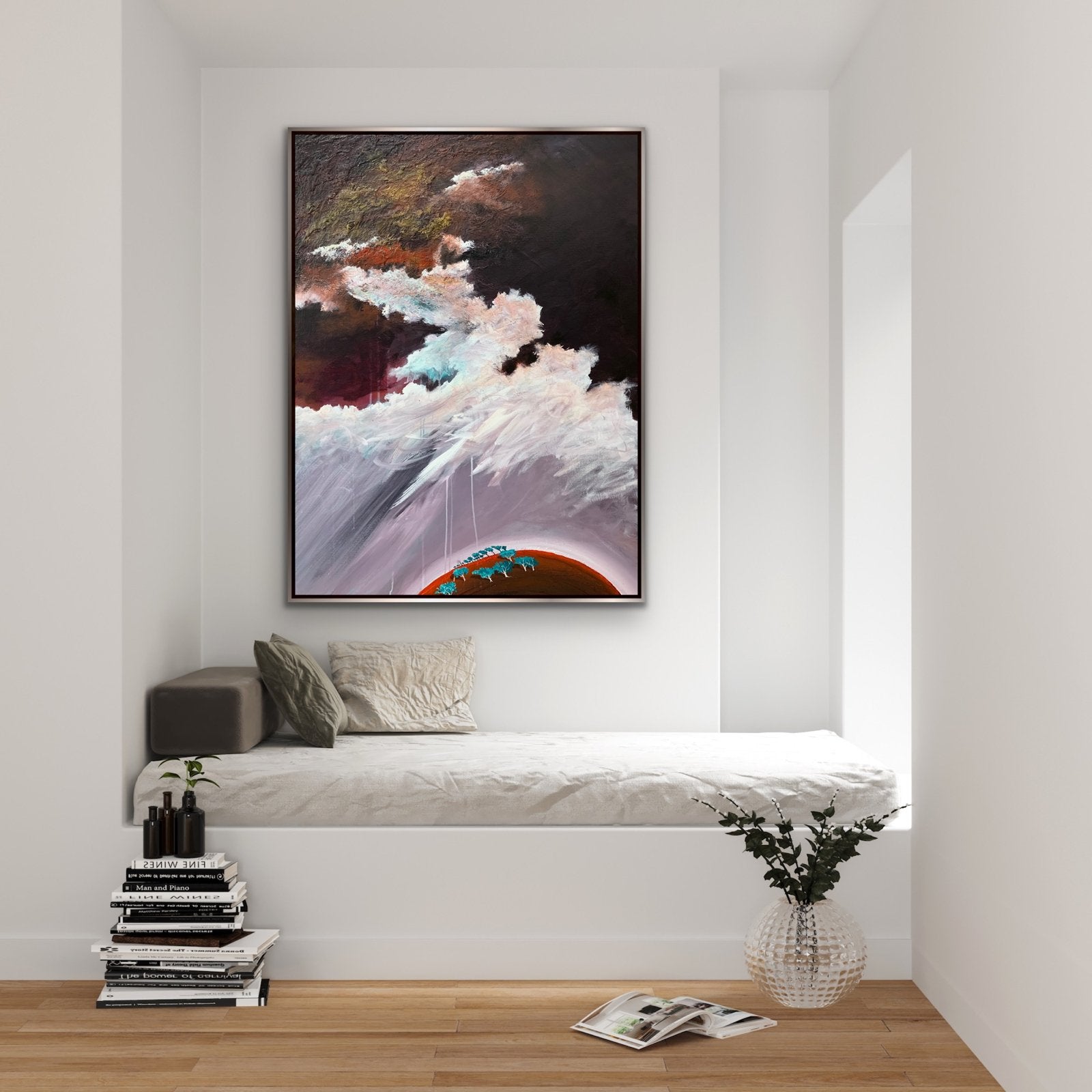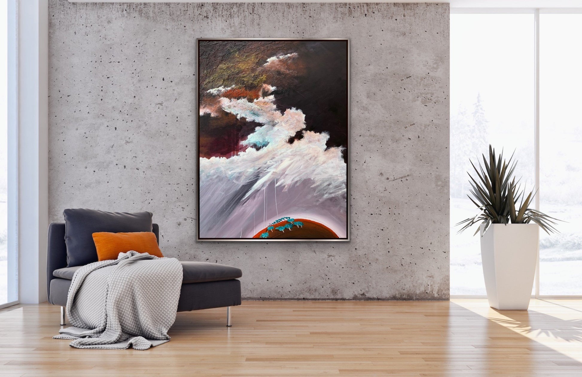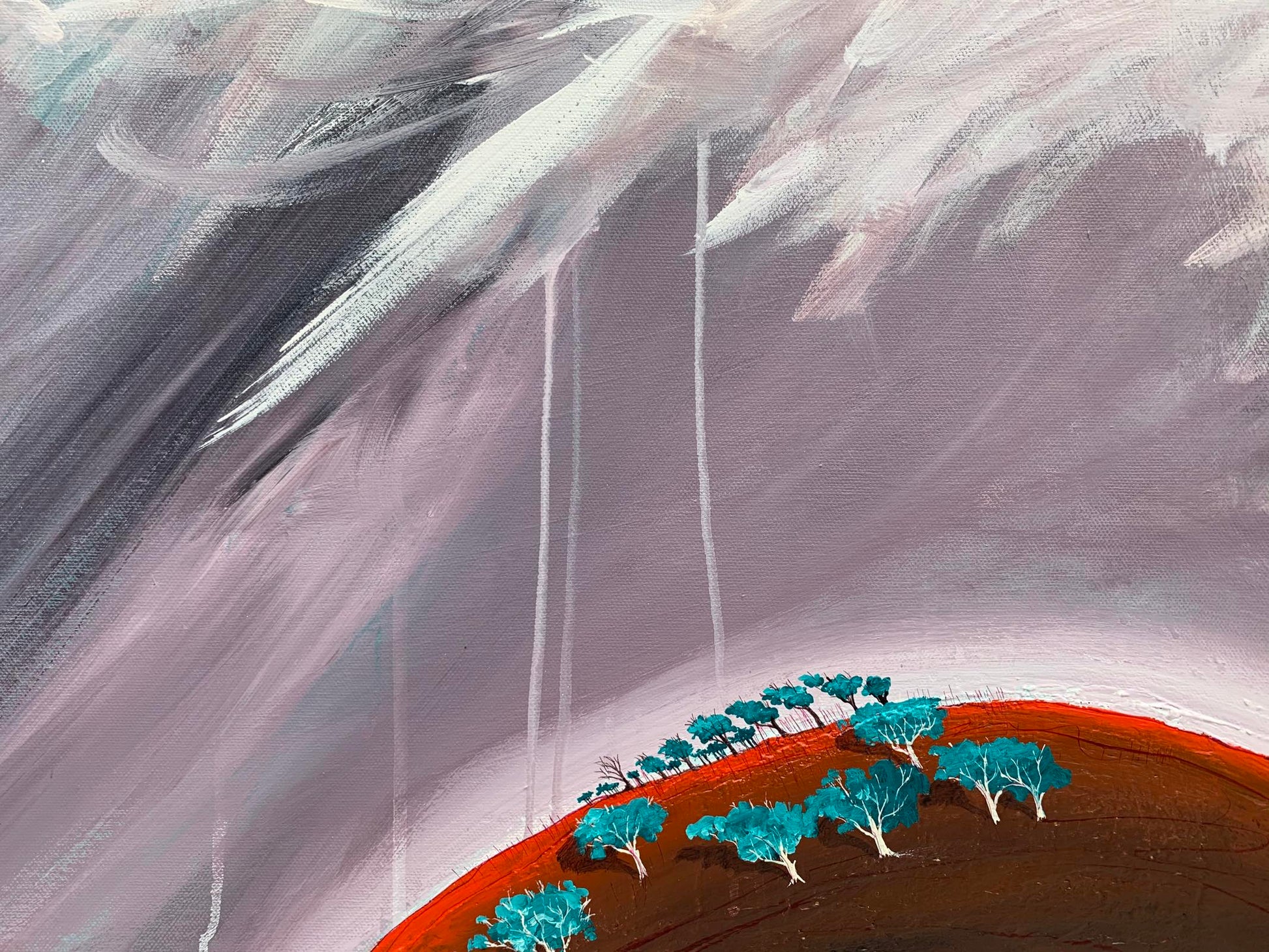Purple Rain is an original abstract impressionist landscape by Tania Chanter, in dramatic tones inspired by the Australian landscape. Tania has always had a love of the depth and richness of the colours and complexity of the sky. Her work draws from the power of storms, sunlight and the ocean. Layered acrylics on a texture base. This painting is double glazed and is finished with blackened edges and is ready to hang. The Artwork is stamped on the front, and signed and dated on the back, and will be securely packaged for your peace of mind. A Certificate of Authenticity is also provided.