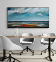 A brooding dance of ocean and sky, Salt And Shadow captures the quiet drama of a seascape at the edge of a storm. Deep, layered blues swell through the canvas, echoing the weight of the sea beneath dramatic, windswept clouds. Flecks of pink glimmer across the water’s surface—gentle interruptions in the melancholy, like forgotten light lingering in the distance. Rich in texture and emotion, this piece evokes the raw solitude of nature’s edge, where salt air meets shadowed skies.