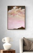 Soft Hours captures a still moment beneath a vast sky as clouds move slowly over a rugged, mountainous landscape. The textured forms below feel ancient and grounded, while the sky drifts freely above, creating a calm sense of distance and pause.