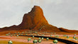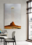 A textured abstract cloudscape painting capturing the raw emotion of solitude. A single cloud weeps softly over whimsical rock formations, its gentle rain merging with the ancient contours of the Australian landscape. Layers of texture and subtle hues evoke a sense of longing and quiet reflection, where sky and earth whisper together in harmony.