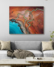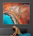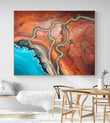The Long Embrace captures the quiet meeting of land and water, where winding rivers carve their way through the rich red earth before reaching the calm blue of the sea. Seen from above, the landscape feels both ancient and alive — a timeless embrace between two worlds shaped by flow, rhythm, and connection.