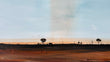 A single textured cloud drifts above the vast Australian landscape, its form heavy with unspoken emotion. Below, the silhouetted countryside and scattered trees capture the stillness of the land, evoking both its strength and its solitude.