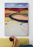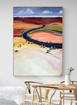There’s a quiet rhythm in nature that speaks without words — the soft curve of a river, the warm hum of the earth, the way light lingers over distant trees. This painting carries that calm murmur, like the land humming its own melody.