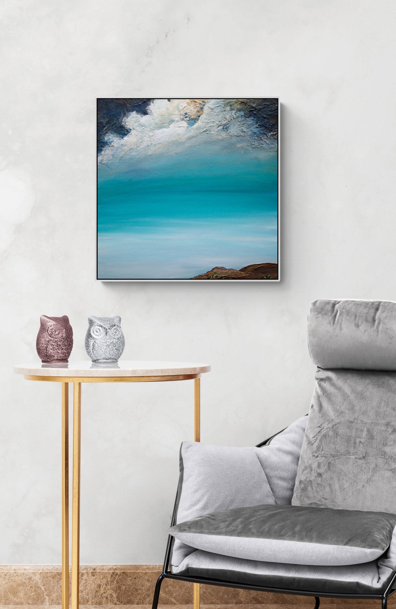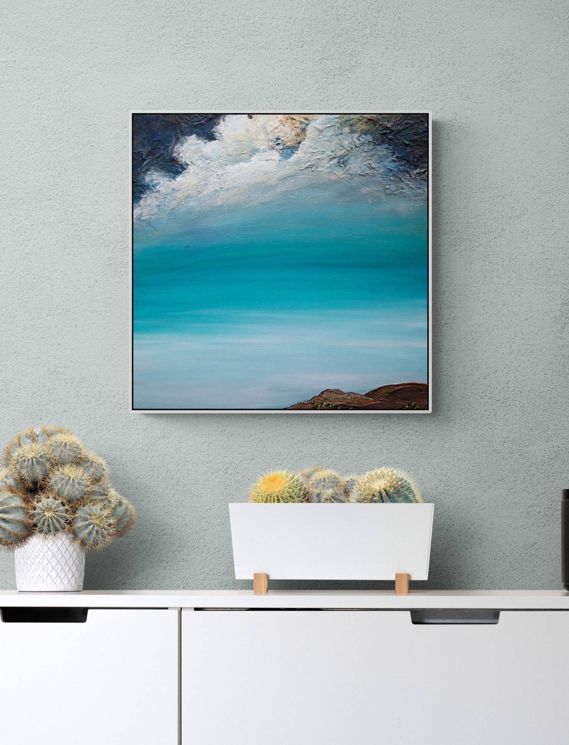 The Turning Season by Tania Chanter is inspired by the atmospheric Australian sky and the changes of light and mood throughout the day. Tania’s hope is that this painting brings a sense of calm to the room where it lives, and that is makes the people who enter the room feel as though a part of nature is right there with them.