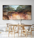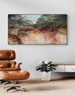 Imagine this expansive landscape gracing your living room or study, bringing a touch of peaceful nature indoors. It's a perfect statement piece to create a serene focal point. The painting is signed and named on the back, with the artist's initials subtly stamped on the front, accompanied by a Certificate of Authenticity. Bring this quiet sanctuary into your home today.