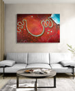 Let this large abstract landscape bring a sense of peace and serenity to your home. Its modern style and colourful palette make it a versatile piece that complements a variety of decor styles. Perfect for creating a focal point in your living room, bedroom, or office, "Where The Earth Smiles" serves as a daily reminder to pause, reflect, and find beauty in the stillness.